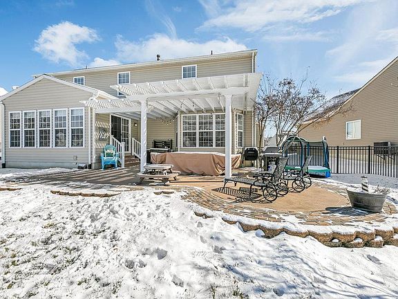 Homes this beautiful don't come along everyday! This 2-Story 4 Bedroom home has more entertainment space than you'll ever need. The main level boasts newer wood floors, 9' ceilings, bright and airy with windows everywhere, open Great Room with a beautiful fireplace. The winding staircase leading you up into a large landing, double doors to the oversized master suite with an extra large walk in closet and an updated bathroom. The updated Kitchen showcases custom granite, back splash, center island, SS appliances, new lighting, 42" cabinets and breakfast bar, overlooking the backyard is the beautiful sun room. Walk out to the perfect patio ready for entertaining! The backyard features a huge patio, covered pergola, irrigation system, fenced in yard, two gas lines for the BBQ and Fire-pit. The Laundry/Mud room features built ins and a bench. The recently updated basement offers plenty of recreation space and a workout space, roughed in bathroom space with drywall. This home has it all!