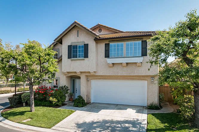 Beautiful Seabreeze home with Flexible Floor Plan - 4 Bedrooms or 3 Bedrooms w/ Office, plus 2.5 Baths, almost 1900 SF and with a Fireplace. Well located in the Gated Complex with neighbors only on one side, offering a large private yard and views of trees through the windows. Tile flooring throughout downstairs, Solid Surface Kitchen Counters & Stainless Steel Appliances are just a few of the upgrades in this lovely home. Plus you'll enjoy the Master Bedroom/Bathroom with a Walk-in Closet and Large Jetted Tub. There is great storage with a Kitchen Pantry and Built-In Shelving in the Garage. Picnic Benches and Dog Park areas in the complex. Come and see your next home!