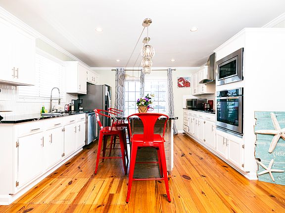 As you pull up to "The Sailor's Lodge", you are immediately greeted by the home with some salty beach breezes and pelicans flying in synchrony overhead! Two vehicles of relatively ANY size can park under each half of the carport. The possibility of bringing a small trailer is also possible, space permitting! The highlight of booking this throw-back bungalow becomes evident in short order as you walk East along the cinder block and crushed marble path running down the left or right side of the home. An artificial turf yard comes into view with seating for 4, a Cape Fear River front swing, and memories for ALL! If a riverside conversation with dunes of feather grass rustling faintly nearby doesn't help everyone clear one's respective salty air and whisk those cobwebs away, I don't know what will! Then again, maybe REST isn't what you need! It's EXERCISE! How about some kayaking or paddle-boarding off your private riverfront deck or a morning dip in the Atlantic up the block! With an ICWW coastline as your backdrop and thew SEA a block up as your "front yard", you can enjoy ANY NUMBER of outdoor activities in your SANDBOX! The first floor of the lodge is equipped with a Game Room complete with a foosball table, Smart TV, beanbag chair, half bath (bathroom #1), and PLENTY of storage for action and adventure! Ascending the steps to your bungalow, an outdoor dining area and small screened in porch is set off towards the rear of the home to ensure gusts of sea salt in ANY weather. Your 3 bedroom/1 bath CB get-a-way opens into a newly furnished family room splashed with vivid beachy colors, combined with an open dining area and modern kitchen. Panoramic ICWW views are visible from the west side of the home through a number of slides, decks, and windows. The modern chef's kitchen is fully equipped with all of the basics, and beyond. Stainless steel, custom tile work, granite amenities, and vintage furnishings of all shapes, sizes, and styles will catch your attention as you traverse deeper into your sandcastle. The living room boasts a pair of vintage blue lounge chairs along with a tan microfiber couch and loveseat set that's perfect to sink deep into after a full day of Sand, Surf, and Sun. A small library resides across various shelving units throughout the home if looking for a long overdue tech detox where you can immerse yourself a bit deeper into the vitamin SEA that our coastal paradise affords! Off to the Southside of the home, all 3 bedrooms respectively await with anticipation! On your immediate left rests the laundry area for when it's time to do a load of those Hawaiian shirts you've been waiting ALL YEAR to use along with the Full bathroom (bathroom #2 with a shower+tub combo)! A few feet further left sits Bedroom #1 the "kid's room" with pair of Single beds, smart TV, and a FULL blast of nostalgia! Across the hall is Bedroom #2. Accompanied by a Queen size bed, the room sports a cozy and luxurious vibe and is accompanied by a panoramic swatch of river view just outside your Western facing window of the yacht basin. Back into the hall, bedroom #3 with it's Vivid and Bold look, a Full size bed, and its own smart TV rounds out your beachy bungalow. The outdoor shower is located outside to help get that sand off of those toes! A cleaning fee of $500.00 for a post "move-out" deep clean will be included in the move-in calculations. The home is strictly NON-SMOKING. Completely furnished from top to bottom. Such an amazing location for a winter get-a-way. ALL utilities are included with a CAP of $300. A virtual showing through the pictures below is preferred. 1 month deposit is required, along with completed zillow application with credit check. Please contact me for any additional questions. Rent MUST be paid virtually using an ACH, debit, or credit method so a working email will be required. This home is rented virtually through both Air BNB and VRBO (April-October). (Monthly VAC leases that cannot be extended beyond 3/31/25. The home is non-smoking building.