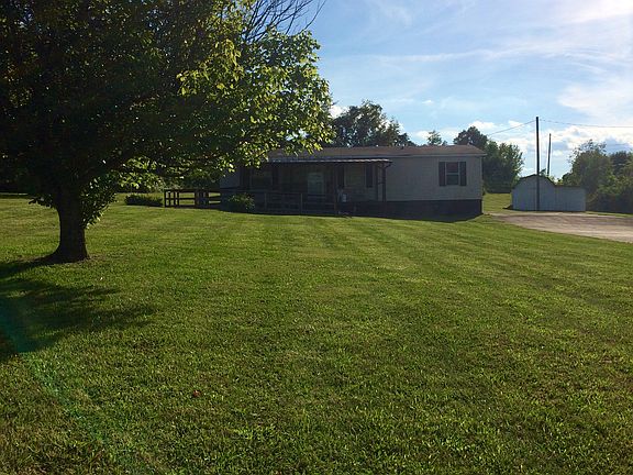 Beautiful country views only minutes to town. Home located on almost 3 acres of nice level land. Two bedroom Two bath with den and living room. Perm. Block Foundation with Concrete Drive. It would be really easy to make den into 3rd bedroom if needed. Home has large covered front porch that has Handicap ramp. Also includes large storage building in back. Call today to see.