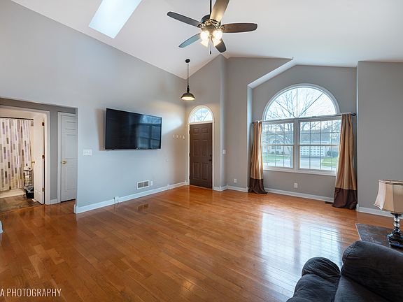 Bigger than it looks! Good bones and ready to move in! Great opportunity to have plenty of space with a finished basement! Extra bedrooms/bathroom plus a stunning family room with gas fireplace for those cool winter nights. Main floor ranch has vaulted ceilings, skylights, hardwood floors and lots of updates. Primary suite with 3 closets, private bath and updated solid surface top. Many updates throughout the 27 years . . . Roof, siding, A/C, Hot Water Heater, Water Softener, Some flooring, Some Lighting, Cabinets, Counters, Some Appliances, Heated Garage and more. The home needs some TCL but it is time to bring your ideas and make it what YOU want! All appliances stay! SOLD "AS IS"!