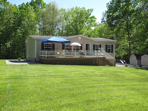Are you looking for seclusion and privacy with move-in ready? Well this is the home for you on 1.4 Acres!The home is gated and totally fenced in front courtyard. Lighting provided by garage (12x20'9). Wide car entrance door and two large sheds with lofts, lights and plug-in power. Large front and rear deck. Also nicely landscaped. The manufactured home has split 3 bedrooms, 2 full baths, woodburning stove in the great room that is open to the kitchen and dining area. Come and see for yourself!!!