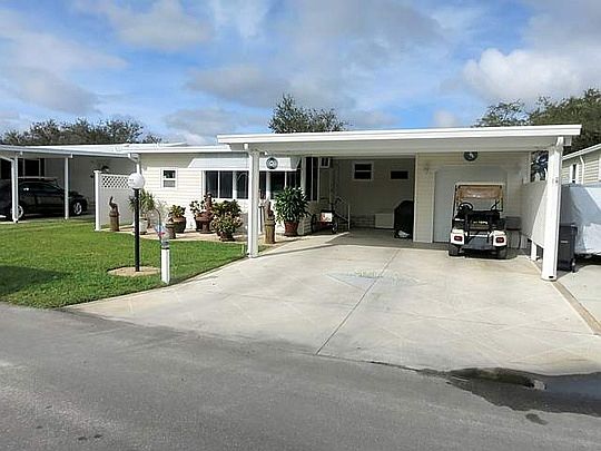 Quality all throughout this remodeled 2bed 2bath home, double pane windows, 2011 new roof over metal, AC 2006, paved patio, double wide covered carport, water softener, corian counters, oak cabinets, large master bedroom, bath granite counters with newer shower unit, enclosed Florida room, 8x13 laundry room, golf cart garage with your own golf cart. SB1616 Over 700 homes available at https://www.fourstarhomes.com