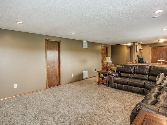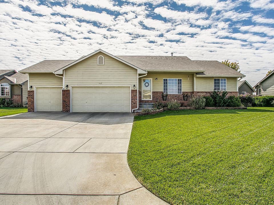 Amazing 4 bedroom, 2 bath, Ranch Home in desirable Old Oak Estates in Haysville! Beautiful from the curb with nice landscaping, freshly painted exterior, and new 2021 roof! Step inside the entry to a large, cozy living room featuring a stylish electric fireplace with shiplap surround. The dining is spacious and the kitchen is well designed with plenty of counter space, storage cabinets, and a nice pantry! You'll love the newer luxury vinyl plank flooring in the living, dining, kitchen, & baths--SO easy to care for and perfect for kids and pets! This is a popular split bedroom plan with the large master at one end of the main level featuring a walk-in closet, and large private bath with tub/shower combination. At the other end of the home are two nice sized bedrooms and a hall bath with tub and shower. The basement is finished with a large family room and sunny view-out windows, a 4th bedroom, laundry with washer/dryer, concrete storm room, rough-in for future bathroom, and lots of unfinished storage space. The back yard is just awesome with wrought-iron fencing and a great view of the neighborhood stocked pond from the wood deck! There's also a sprinkler system to keep the lawn easily watered as well! A covered front porch and oversized three-car garage with Epoxy coated floor and extra loft storage is a BIG plus! This home is super cute with modern decor and move-in ready for a new buyer! Schedule your private showing soon before this beauty is SOLD!!!