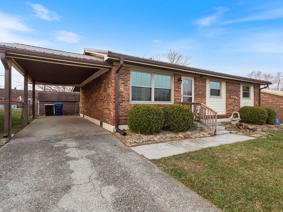 Cozy 3 Bed, 2 Bath ranch in Winchester, KY. This delightful home offers a perfect blend of comfort and convenience, located just minutes from shopping and only 25 minutes from Lexington. Ideal for anyone looking to enjoy the tranquility of suburban living while being close to city amenities. Enjoy the beauty of hardwood floors throughout the main living areas and bedrooms and plenty of extra attic storage accessible from hallway. Kitchen has electric stove but is plumbed for gas range as well. The home features new windows with a lifetime warranty, ensuring energy efficiency and peace of mind for years to come. The metal roof adds durability and low maintenance, protecting your investment from the elements. The living room is equipped with a gas backup heater, perfect for keeping you warm during those chilly winter nights or in case of power outages. There is a fully fenced back yard ,large brick fire pit. There are also two fully mature peach trees, two fully mature cherry trees and rose bushes galore. New shed provides additional storage for all your gardening tools and outdoor equipment, keeping your yard tidy and organized. This