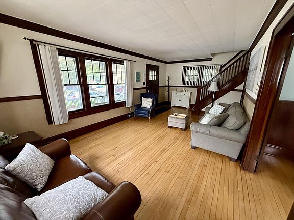 Come take a look at this beauty! 1,412 sq ft with added finished space in the lower level. 3 large bedrooms and a bathroom on every floor. Home features natural woodwork and beautiful hardwood floors throughout. Kitchen has been updated with granite countertops, tile backsplash, stainless steel appliances and walk-in pantry. Laundry room on the second floor.(This room could be converted back to a small bedroom or office.) Lower level features spacious recreation room, office area. Outside is a massive wrap around deck, great place to relax or entertain. The .16 yard is landscaped to create a very private backyard. Located close to downtown and a short walk to the lake. Move in ready, Call today!