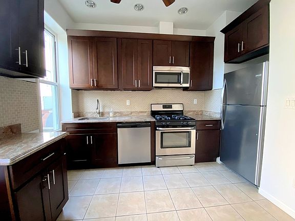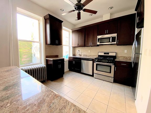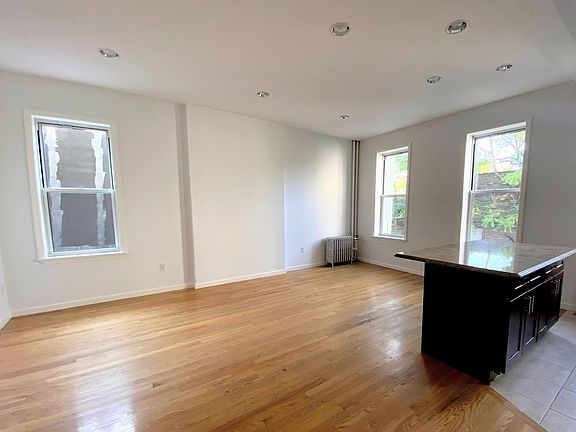 An enormous sun-lit apartment with soaring ceilings, ample storage space and access to a shared backyard! The large living room and a recently renovated open kitchen with full-sized stainless steel appliances are perfect for entertaining and face a private back garden. Enjoy natural light through oversized windows, with the floor-through apartment boasting three exposures. Each of the three generously sized bedrooms has its own closet, with additional storage throughout the apartment. There is also a beautiful pier mirror in the primary bedroom! Back yard is shared with only one other unit. The building is conveniently located by the L train, next to grocery stores, bars like Bushwick Country Club (with its own 6-hole mini golf course), restaurants, and several parks with basketball, tennis and handball courts. Shares and guarantors are OK. Pet friendly building. Brokers, CYOF.