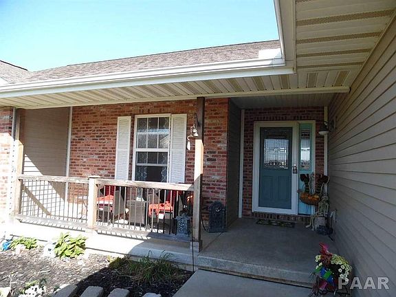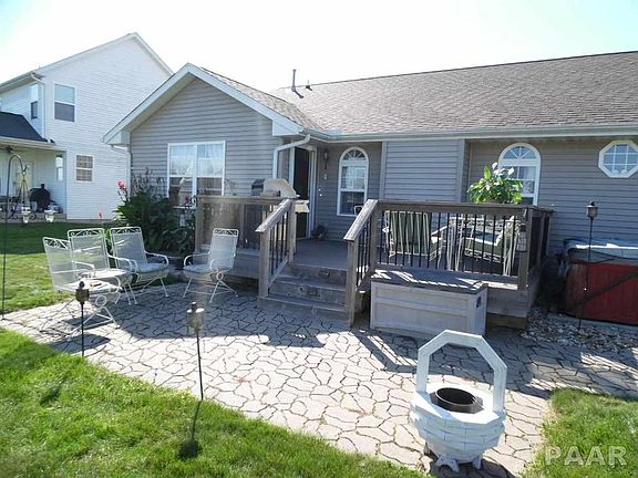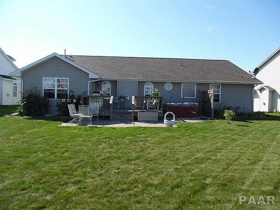 This 3 bedroom Trails Edge Ranch home is MEANT FOR ENTERTAINING! Offers: 3 bed, 3 full bath, finished basement, attached garage, large 1/3 acre lot, open kitchen/living room with breakfast bar and island, granite counters, 2 fireplaces + more! Basement has beautiful built in bar, cork floor, fireplace, egress windows + tons of storage. Convenient main floor laundry. Home already has a radon system. Outside you'll find a good sized covered porch, deck, bocci ball court, raised flower beds, + fire pit. All of this within walking distance to LaHood Park and Blue Ribbon Central Schools!