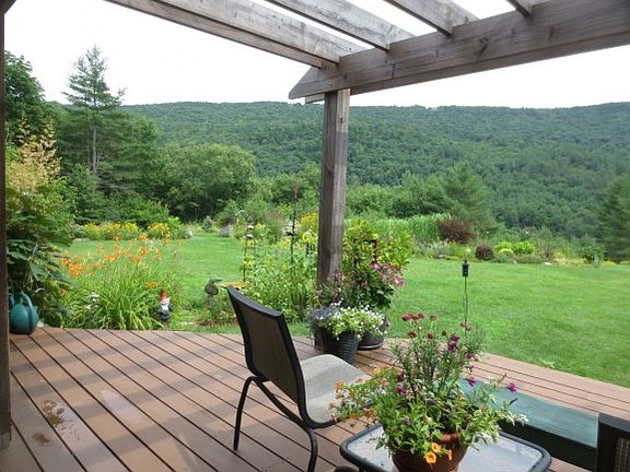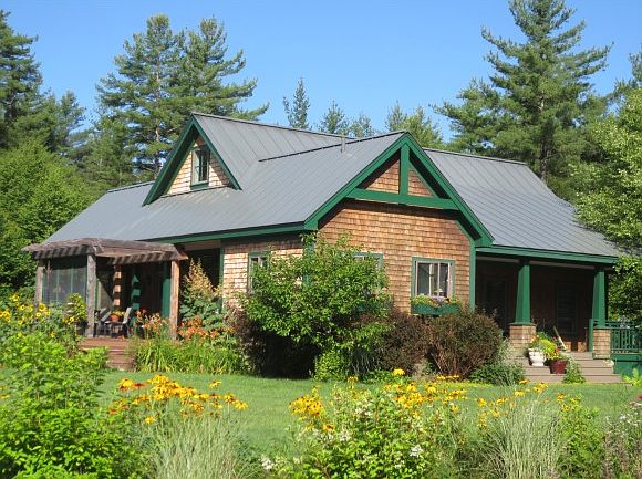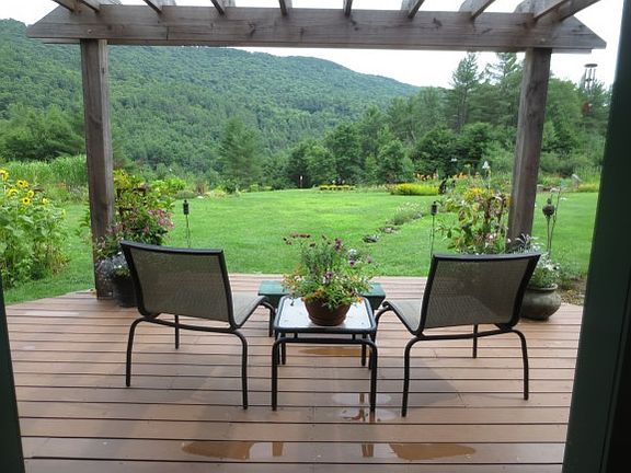 At the end of a private driveway, find a truly enchanting, 2002 home with echoes of Arts and Crafts design, surrounded by a spectacular 34.5-acre setting with rolling lawns, fabulous perennial flower beds and sweeping views of Putney Mt. Creative with incredible attention to detail combine with a stunning cathedral main room, 3 bedrooms, spacious studio, 2-1/2 baths, a uniquely beautiful, functional kitchen, large family room, shop, a deck with pergola and 3 porches, one of which is screened. Quality materials are used throughout from the cedar shingles to the wide pine and tile floors. Many of the rooms and outdoor spaces enjoy the panorama or other intimate gardens, stonework or staircases. If you're looking for complete privacy, solace, sensational gardens and lawns that give depth to a stunning, unspoiled view, you've found it.