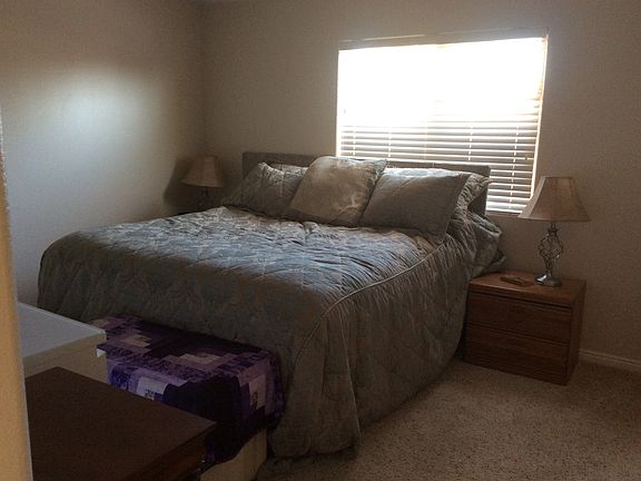 Spacious Townhouse with 3 Bedrooms 2 1/2 Bathrooms and a Garage. South Facing Fenced Back Patio with a gate that goes right to the Swimming Pool. Recent upgrades include Ceiling Fans, Laminate Wood Flooring in the Living Area, and Plush Carpet upstairs. Main level has living room, kitchen with dining area, desk area, laundry room, storage room and 1/2 bath. Upstairs has 3 bedrooms and 2 full baths. Open Kitchen has a window to your back patio and a Huge Breakfast Bar. 2 Pantries and Lots of Extra Storage. Central Vac is a plus. Shady front porch sitting area as well. You have your own adjacent garage with a separate individual parking space. Lots of guest parking on the side, or you can rent another spot with an annual fee.
