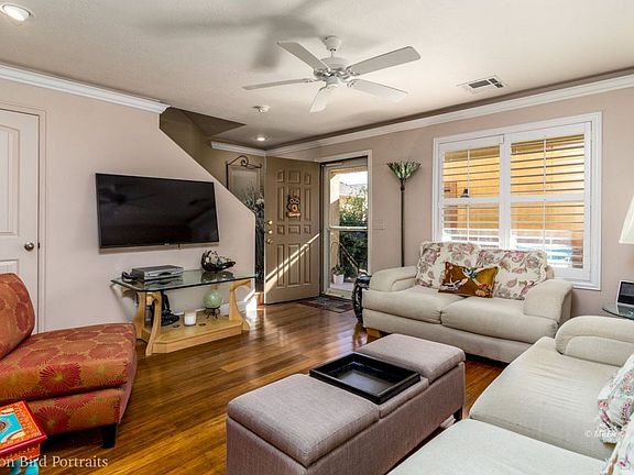 This beautiful, remodeled and upgraded, 1340SF Skyhawk Town Home is a must see! The popular floor plan features two levels with the living area, kitchen, laundry room and 1/2 bath downstairs. Remodeled with 2 master bedrooms, each with a walk-in closet; 2 upstairs bathrooms, one completely remodeled and the other with new upscale vinyl floors.. There is a one-car detached garage just a few feet from the front door with an assigned parking space next to it. All kitchen appliances are included (stainless steel). Upgrades include: pull out shelves in kitchen cabinets; recessed lighting; crown molding; 5 in. baseboards; bamboo wood flooring; plantation shutters; storm door, ceiling fans; new stainless steel sink (farmhouse style); new faucets; new paint; work bench and cabinets in garage; new a/c; 3 yr old hot water heater; new toilets; new disposal; central vac. There is a very large storage area under the stairs. In the rear, there is a fenced-in patio with carpet. Several guest parking spaces nearby. Skyhawk Community offers a large swimming pool/bathrooms/hot tub. There is also a grassy area to walk pets. This is the perfect town home for a snowbird or a family. Come look!