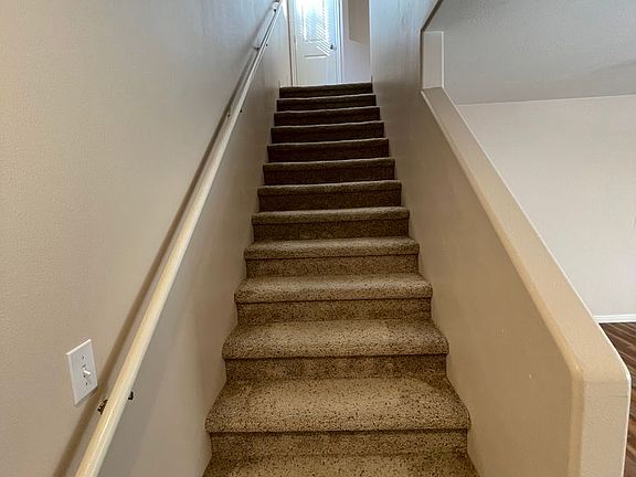 Large living room with ceiling fan has a big storage area hidden under the stairs. This is a wonderful floor plan. The kitchen is open with lots of counter space and a large breakfast bar. There is a built in desk right off the kitchen. Full sized dining room with sliders to the big back patio. All 3 bedrooms are located upstairs. Main Bedroom has a full bathroom with shower and tub and a walk-in closet. The upstairs hall bath is right between the other 2 bedrooms. Central vacuum is another bonus of this townhome. All appliances are included. This unit comes with a 1 Car Garage plus a parking space next to it . Sorry, no smoking and no pets allowed.
