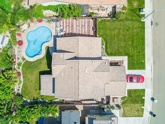 Looking for the perfect home to enjoy Summer? This is it! Featuring a backyard ready for your summer parties and BBQ's, in-ground swimming pool, outdoor shower, surround sound, HUGE side yard with custom covered pergola & hand laid bricks. Inside features updated kitchen w/ wood look tile flooring, stainless steel appliances and custom kitchen island. Full bedroom and bath downstairs, separate living and family rooms, family room w/ crown molding, NEW HVAC system and much more! Won't last long.