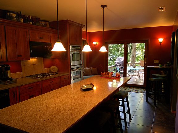 Beautiful Home Has A Contemporary Flare With Well Planned Layout For Ease Of Living And Entertaining! This home on a half acre wooded lot w/ a seasonal lakeview is located in Lake St Louis w/ all the wonderful Lake amenities!! You will get the "wow" effect as you enter the front door and into the massive great room w/ cathedral ceiling, tons of windows, wet bar and floor to ceiling stone fireplace! Breakfast room area and formal dining room lead to newly added kitchen featuring custom cabinets, solid surface countertops, large center island, stainless appliances and tile flooring! Awesome main floor laundry room has lots of cabinets, and sewing area! Upstairs, large vaulted master bedroom w/ adjoining den which overlooks great room, patio door to private upper deck and luxury bath w/ whirlpool tub! Outside there is a wrap around deck from back to side of home, outdoor firepit, irrigation system, storage shed and just tons of beautiful landscaping among the private wooded back yard!