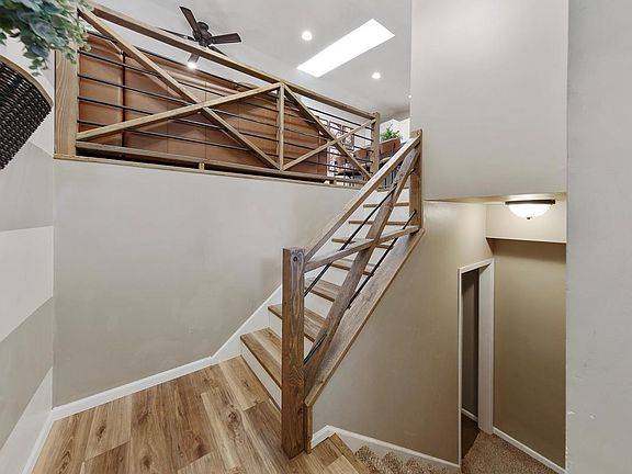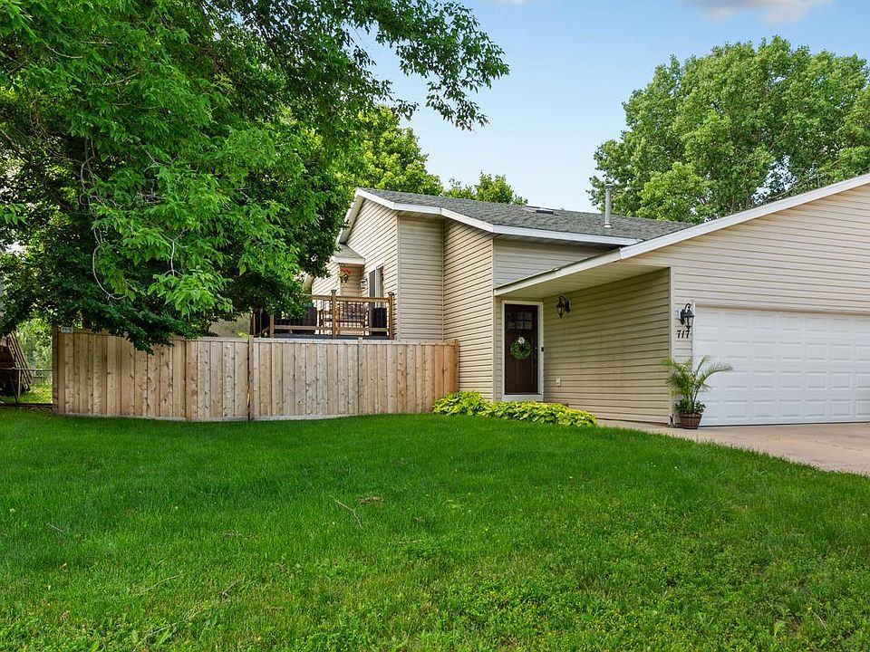 Not part of an association. Huge private yard! Imagine moving into a home where every detail feels like new construction. This modern farmhouse style inspired home, with design elements like shiplap and cable railings blends elegance and charm. The kitchen, remodeled in 2022, features stainless steel appliances, quartz counters, LVP flooring, tile backsplash, white cabinetry, walk-in pantry, and large center island. Enjoy your morning coffee at the breakfast bar or outside on the deck. New LVP flooring extends into both main floor bedrooms & all throughout the main level. The inviting upper level bath evokes spa-like vibes with its custom tile, wood, and marble features. Downstairs offers a separate entertainment space that features a decorative wood plank wall. It’s perfect for cozy gatherings & memorable movie nights. Outside, your backyard awaits! A beautiful new fence makes this the perfect place to relax and play this summer. Come see for yourself all this home has to offer!
