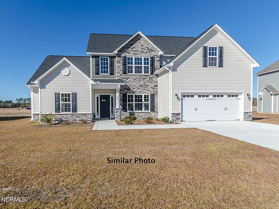 Welcome to the highly desired & popular community of Onslow Bay. Brand new construction built by Onslow County's most trusted & preferred builder, featured in Builder 100/ Top 200 Builders in the country. Onslow Bay is a hot spot, 3 miles to MCB Camp Lejeune's Piney Green gate, 14 miles to New River Air Station & minutes to area schools, shopping & dining. This beautiful neighborhood is sure to impress, complete with a clubhouse area & community pool. Welcome to the Berkley. 2920 heated square feet, 5 bedrooms 3.5 bath. Main level master bedroom. A covered porch leads into a 2-story foyer with natural lighting. A formal dining room is off the foyer. This very open floor plan is great for entertaining. Open kitchen 10 x 14, breakfast room, and family room. Kitchen features lots of cabinets, a center island, and a pantry. Stainless appliances include a smooth top range, dishwasher, and microwave. The open family room features a ceiling fan and a fireplace topped with a custom mantle. The main level master suite also has a ceiling fan and a deluxe master bath with walk in closet. The master bath has a separate tub and shower, a double vanity with custom mirror and a grand walk-in closet. 4 spacious bedrooms on the second floor, one having a charming sitting area. 2 full bathrooms upstairs with an additional half bath on the main level. The Berkley is a much see floor plan complete with a 2-car garage. Call Today! NOTE: Floor plan renderings are similar and solely representational. Measurements, elevations, and specs may vary in final construction. All selections have been ordered, limited selections for buyer to choose. Call L/A to verify.