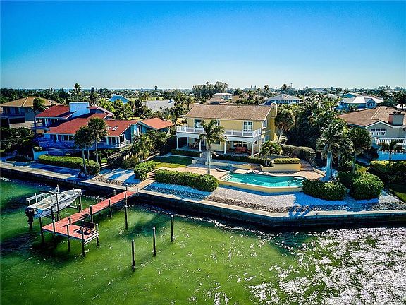 Wake up every day to DIRECT BAY FRONT water views in this lovely Anna Maria Island Home located on Key Royale Drive with Approximately 150 feet of seawall. This Island Home has 4 Bedrooms, 5.5 Baths, with 3,748 living square feet and 5,156 total square feet. The Skyway bridge is beautifully lite and visible in the evening from many rooms of the home. Enjoy spectacular water views from the Pool, Dock, Covered Lanai, Living Room, Dining Room. Kitchen, 2nd Floor Master Bedroom and 2nd Floor Guest Bedroom. Home has been recently renovated and roof deck replacement was done in 2017. This home is located at the North tip of Key Royale and is part of the North Point Harbour Community which includes a public pool, tennis court and recently renovated club house. The association fees are $350 per quarter. The private Key Royale Golf Club is just steps away and membership packages are available to purchase. Please view the drone video and 3D Walk through - Walk Through the entire home with your arrow keys, mouse or touch screen. Don't let Paradise slip away!!!! Call your agent today to set up a showing.