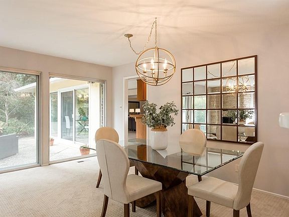 Come home to your oasis of calm ~ this tranquil property is nestled on a large but very private lot. On a street where property availability is rare, this home is created for ideal quality of life. Complete with 5 bedrooms, 3.5 baths, the single-level floor plan includes 2 dining areas, large kitchen with prep island sure to encourage any chef to make it their own. Spacious LR, FR with wood-burning fireplaces, master suite all open to a serene tree-lined backyard. From the kitchen, the expansive separate patio turns into an entertainers delight or an outdoor family retreat, and an incredible en suite bedroom is set apart from family bedrooms providing privacy for all. Located on a beautiful quiet street, this home boasts an ideal location close to parks, shopping, schools, transportation and easy access to freeways. Private showings also available upon request.