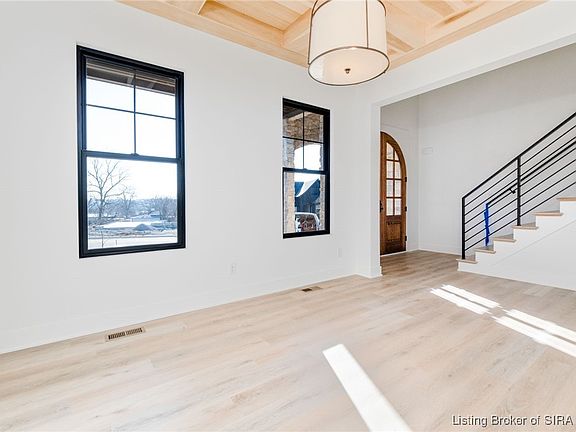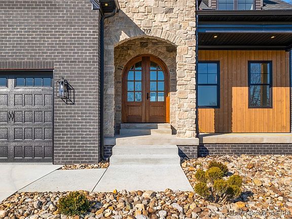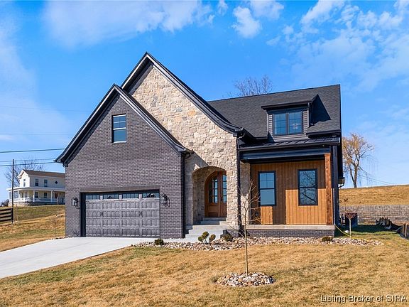 The MINT JULEP by Millennium Builders is specifically designed for Southern Indiana's hottest new development, THE WILLOWS. Ideally located just three minutes from the NEW EAST END BRIDGE, this HUGE HOME sits on a large lot with WOODED BACKDROP and offers ELEGANCE at every turn. This 4 bed, 3.5 bath English Cottage Style home boost TONS OF CURB APPEAL! When you enter, the 2 STORY FOYER, oversized windows, trim detail, FORMAL DINNING ROOM and OPEN FLOOR PLAN take your breath away. The EAT-IN gourmet kitchen features a WALK-IN PANTRY, custom cabinets, QUARTZ countertops, stainless appliances, and OVERSIZED ISLAND. The luxury continues in the FIRST FLOOR PRIMARY SUITE, with vaulted ceilings, large SOAKER TUB, custom glass shower, dual granite vanities, and HUGE WALK-IN CLOSETS. The two story floor plan also provides a large laundry room with mud room access. A full bath, two bedrooms complete the 2nd level. The FINISHED BASEMENT features a large family room, 4th bedroom, full bath and plenty of storage!