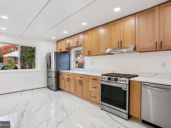 Completely renovated with high-end features, this stunning Colonial in the highly desirable Takoma Park location is sure to captivate you! Recent 2025 updates include: a new roof, dual-zone HVAC system, tankless hot water heater, and front-loading washer and dryer. The three fully modernized bathrooms feature custom vanities and marble tile. Throughout the home, you'll find all-new, modern light fixtures. The fully renovated kitchen is equipped with brand-new stainless steel appliances, Italian marble flooring, top-quality wood cabinetry, quartz countertops, and a luxury sink. Enjoy the exquisite Brazilian Tigerwood flooring, and new luxury vinyl plank flooring in the addition, along with custom-built closets and railings. For added convenience, the property includes off-street parking with space for up to six cars, and an expansive brick patio off the office/sunroom for outdoor enjoyment. Additional features include main-level laundry, a primary bedroom with a full bath on the main level, a spacious storage shed, and a slate front walkway with a covered entry porch. Finished lower level includes a 3rd full bath, family room and 5th bedroom/den. Don’t miss out! Click the link for the virtual tour to explore an interactive floorplan with photos.