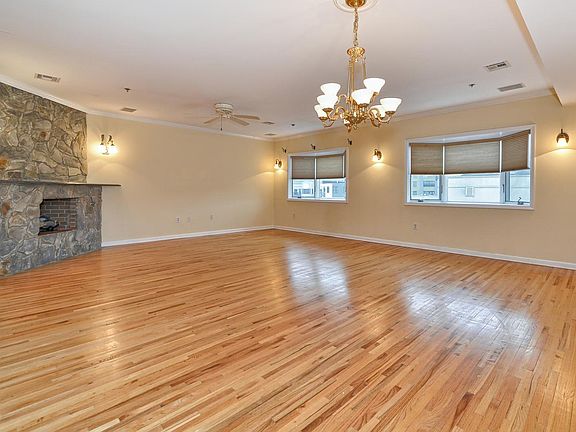 Amazing Penthouse 2 bed 2 baths, sq 1360, with amazing NYC views from its private roof top deck!! This unit offers a large living room with bay windows and a fireplace, dining room, and a kitchen that opens up to living space. Kitchen has an island, granite counter tops and cherry cabinets. This condo includes a deeded garage parking, hardwood floors throughout, c/a and heat, w/d in unit, dishwasher, stove, refrigerator, ceiling fans, a common yard, and a private roof top deck with breathtaking NY skyline views. Only 1 block from Shoprite and Light rail.