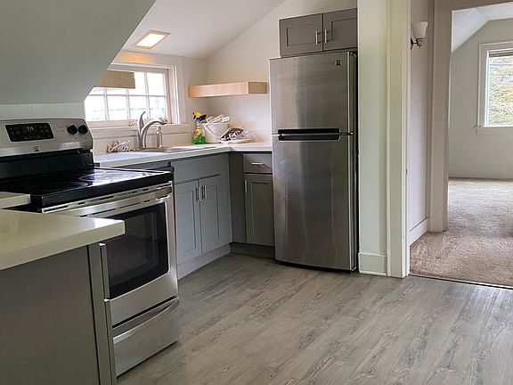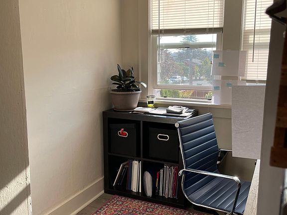 This large one bedroom WITH OFFICE on the Top floor of a cottage-like 4 plex shares no walls with other apartments so there is north, east and west exposure. Lots of light, remodeled kitchen, and separate OFFICE off of the kitchen. Living room is large and gets great light. There are pay laundry facilities on site and a terrific backyard for BBQ's. Shared yard and vegetable garden. Well behaved pets welcome on case by case basis. This location has great walkability (Score of 89). It is close to the Greenwood business district and is also a short jaunt to Greenlake with easy access to downtown or the UW. Please email or TEXT for a viewing. No Phone calls PLEASE. Utilities not included