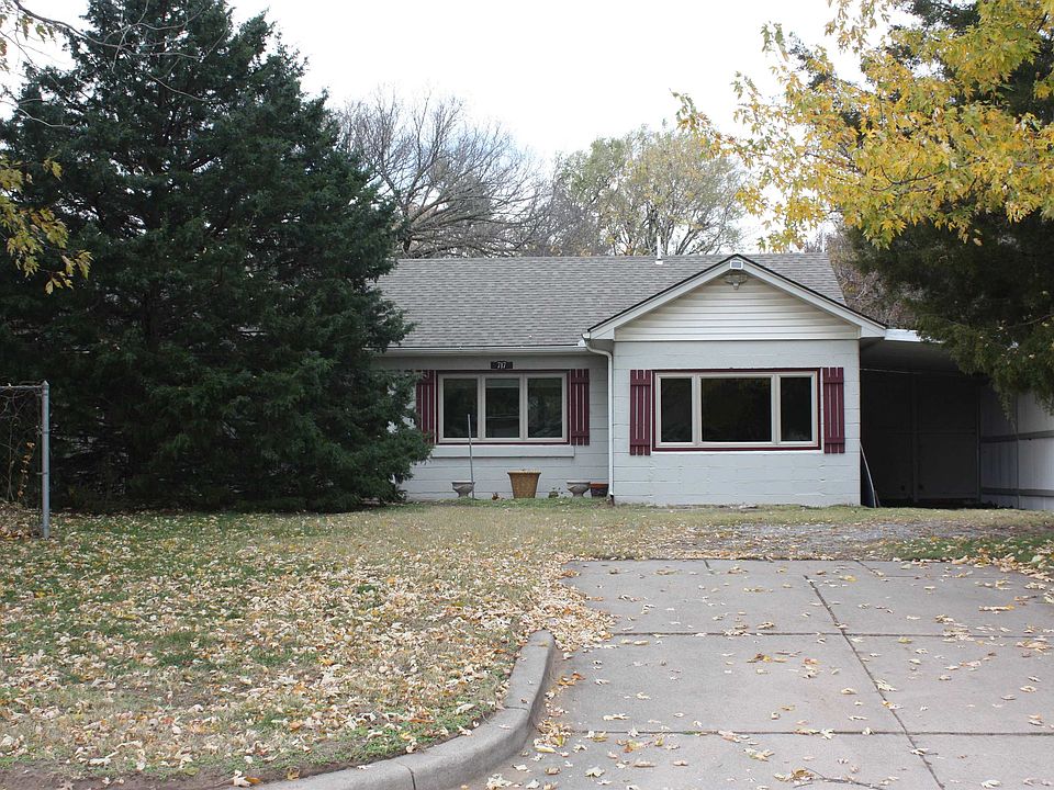 Almost a half acre lot conveniently located to Hwy 235 so you can be anywhere in Wichita in minutes! This home is ready to move into. All appliances stay including the gas range, newer refrigerator and newer dishwasher, all high end stainless steel appliances. Updated bath with large tiled shower with glass doors, high vanity and ceramic tile floor. Ceramic tile floors in kitchen and living room also. There is a screened in room for storage, plants, etc with a cement storm shelter. The property is completely fenced, and a newer storage shed out back. Plenty of room to build a garage or shop!