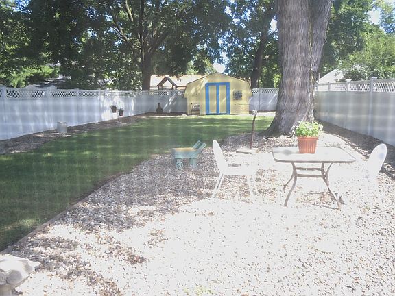 Eat-in kitchen with newer oak cabinets. Recent updates include: T-pane - windows and bay livingroom. Maintenance free metal siding. 3 Season porch. Garden Shed. Custom vinyl complete backyard privacy fencing. Carport and hobby/workshop room with overhead door to driveway.
