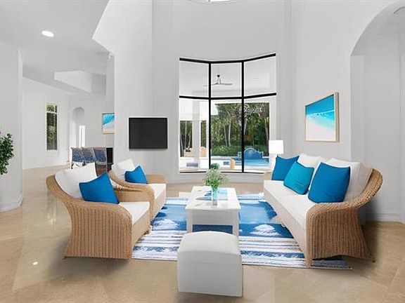 Courtesy of Epique Realty, Inc. Tucked away on a quiet, tree-lined cul-de-sac, this stunning 5-bedroom Mediterranean-style residence sits on an expansive, lushly landscaped lotoffering the ultimate in privacy, serenity, and space to entertain. Inside, soaring ceilings, elegant architectural details, and Restoration Hardware lighting set the tone for refined yet comfortable living. Generous living areas provide a seamless flow for everyday life and hosting, while the thoughtfully designed layout adds a touch of timeless sophistication. The luxurious primary suite is a true retreat, featuring dual walk-in closets, dual water closets, and the convenience of a second washer and dryer. Additional features include impact-resistant windows and doors, a whole-house water filtration system, a custom outdoor summer kitchen, and a heated saltwater poolideal for year-round enjoyment. Located in one of Boca Raton's most sought-after neighborhoods and zoned for A-rated schools, this home offers the perfect balance of style, function, and location.