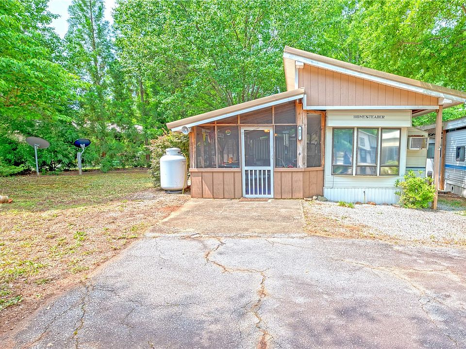 Welcome to Foxwood Hills' RV Village of Newbury! This updated 1990 Homesteader RV is the perfect getaway retreat complete with a full shelter and screened in porch. Inside, you'll find tasteful updates like LVP flooring, wood countertops, and all kitchen appliances. The bedroom features a rustic setting with beautiful barn doors, while the cozy living area doubles as a guest space with a convertible twin bed. Enclose the screened porch for added living space or enjoy outdoor gatherings in the serene surroundings. Residents have access to a host of amenities including a very large swimming pool, tennis courts, playground, pickle ball courts, community game nights and scenic trails. Indulge in culinary delights at the on site Foxfire Bar & grill. With two public boat ramps nearby, Lake Hartwell offers endless opportunities for water recreation Conveniently located minutes from I85, residents enjoy easy access to Atlanta, Greenville, and the Blue Ridge Mountains. Don't miss this chance to embrace the vibrant community lifestyle of Foxwood Hills, where every day feels like a vacation!