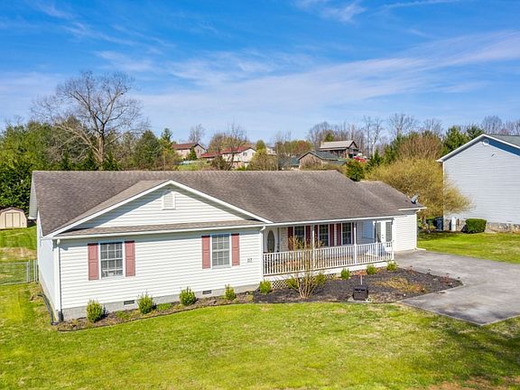 Absolutely beautiful one level living! You will love the open concept feel with an awesome dining room and remodeled kitchen. Start cooking with matching Whirlpool, stainless steel appliances and a lovely tiled backsplash. Come enjoy your huge master suite with a brand new tub, vanity, and fixtures, plus a walk-in shower. All bedrooms are spacious and boosted with new paint throughout. Don't forget about the additional family or game room for even more space. The outdoor lighting has been updated and landscaping includes a peach tree, strawberries, blueberries and mint garden boxes for your enjoyment. There is a massive 30x30 detached garage with electricity to make this home even more desirable. The large lot is fenced in with a nice size back deck for entertaining and a covered front porch. Perfectly situated between Jonesborough and Johnson City. Come fall in love today.