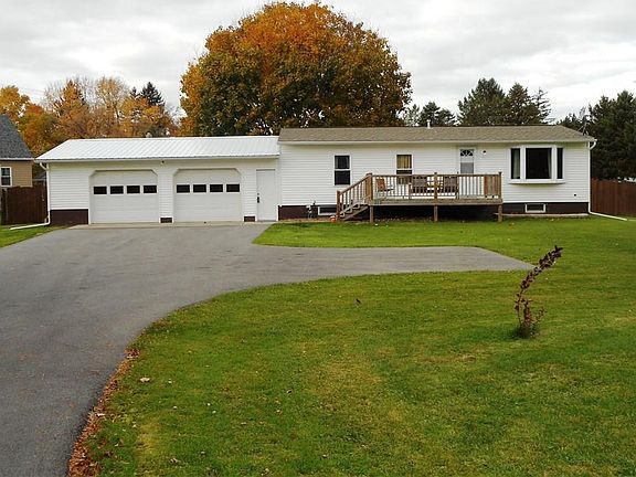 this home sits back off the road 3 bedrooms ,1 full bath , full basement 2 car garage front deck and back deck partially fenced in yard , formal diningroom ,breakfaast bar . generator hook up .. long drivway with parking area ..central air. great starter home located close to the park .some newer mechancials , knotty pine cabinetry for a rustic feel..