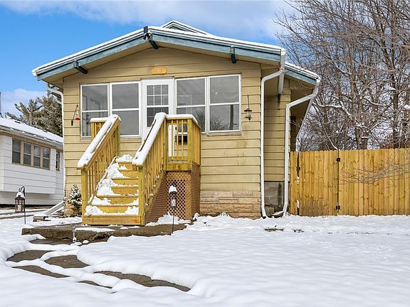 cabinets, LVP flooring, SS appliances and attached pantry cabinet. Laundry area conveniently located off kitchen with LG stackable washer/dryer. Formal dining room with new blinds and laminate flooring. Large living room with beautiful built-in book cases with glass doors and original fireplace for a bit of nostalgia. Bright and sunny enclosed porch to relax with a wonderful view of the river. New front deck off porch. Nice sized primary bedroom with windows surrounding the room for natural light, large closet with shelves and ceiling fan. Family bedroom with large closet and ceiling fan. Newly updated bath with a large shower, vanity and storage. Basement with new windows, water heater and sump pump. Roof approximately 5 yrs. New wood privacy fence with gate to alley that opens wide enough to bring in an RV, boat etc. One car detached garage. Partial shared driveway with some new concrete. Close to McHenry Park and the all the fun shops that have been revitalized. Close to downtown. This would make a great starter home!