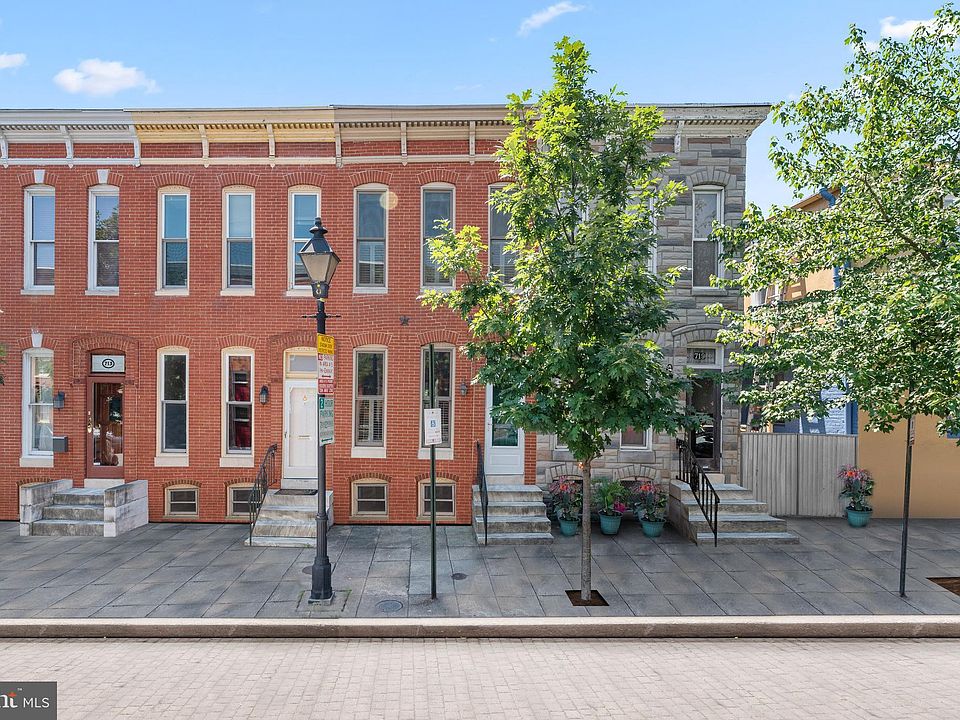 Pristinely kept and meticulously maintained 3 Bedroom, 2 Bathroom townhome with OWNED SOLAR located near the end of a charming, no-through cobblestone street in Ridgley’s Delight Historic District. Gleaming hardwood floors throughout the main and upper level, high ceilings, and exposed brick give this home all of the charm and character you would expect in a 100+ year old home, yet it has all of the conveniences and comforts that modern amenities provide. The included solar units are owned free and clear with NO POWER PURCHASE AGREEMENT, and are transferable to the new owner. The beautifully updated kitchen includes rich maple cabinetry, granite counters, stainless appliances, large island with breakfast bar, and spacious breakfast area with access to the lower balcony as well as the patio and fenced yard. The upper level offers two spacious bedrooms, access to the upper balcony, and a completely updated full bathroom. The lower level includes an exercise or recreation room, a third bedroom, second updated full bathroom, and laundry area. Easy roof access for potential rooftop deck entertaining. With included parking permits, this fantastic downtown location is a short walk to the stadiums, inner harbor, UMMC, and UMB. Picture perfect and move-in ready, don’t let this unique opportunity to own a thoroughly modern, sustainably powered, and historically-located home pass you by!