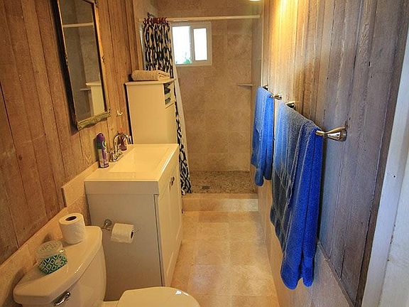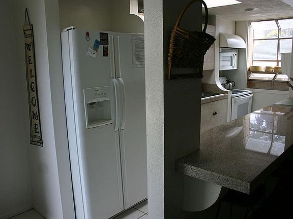 Furnished and equipped spacious 2 bedroom 2 story peak ocean view beach house, 15 steps to the sandy beach, sleeping for 4. Bedroom and bathroom downstairs and bedroom and bathroom upstairs. Granite counters in the kitchen, wood flooring throughout, deck and balcony on the second floor, personal back patio for downstairs bedroom, garage for 1 car (laundry in the garage), internet/cable and flatscreen TVs in every room, BBQ