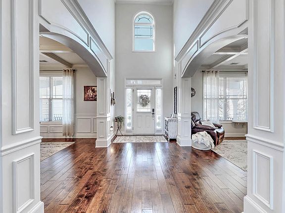 Spectacular open floor plan 5 bedroom 4 bath River North home with 3 car garage with man door plus newer salt system pool with fenced backyard! Freshly repainted interior! Rocking chair front porch welcomes guests! New Ring Door Bell! Upgraded kitchen with new convection oven, gas stove top, refrigerator that stays, pantry, stone backsplash, granite counter tops, island & arched entryway! Breakfast room overlooking private backyard! Two story living room with built ins, fireplace with gas starter, bay window & awesome moldings surrounding entrance to the kitchen! Dining room with wainscoting, coffered ceiling & gorgeous moldings! Plus Den with coffered ceiling! Guest bedroom or inlaw suite on main level with nearby full bath with tile floor & upgraded granite vanity top! Upstairs spectacular owners suite with french doors, tray ceiling with fan, french doors to bathroom with jetted tub, tile shower, tile shower, double sink vanity, water closet, linen closet & huge walkin closet plus 2nd large closet! Two additional bedrooms with jack and jill bathroom with 2 vanities, water closet & tile floor! Third spare bedroom upstairs with private full bath with tile floor & granite counter top! Two linen closets! Laundry room with utility sink! Mud bench seat! Deck great for entertaining overlooking completely transformed backyard with privacy! Full landscaping with sprinkler, exterior lighting, garden area with separate sprinklers! Built in a/c under the stairs in the garage with window for pups! Separate heat/air for each level for better efficiency! Attic stairs added! Hot water heater in the garage closet (not in attic)! This home is across from the river lot with neighborhood boat ramp! Hurry to see this move in ready home built by JR Homes!