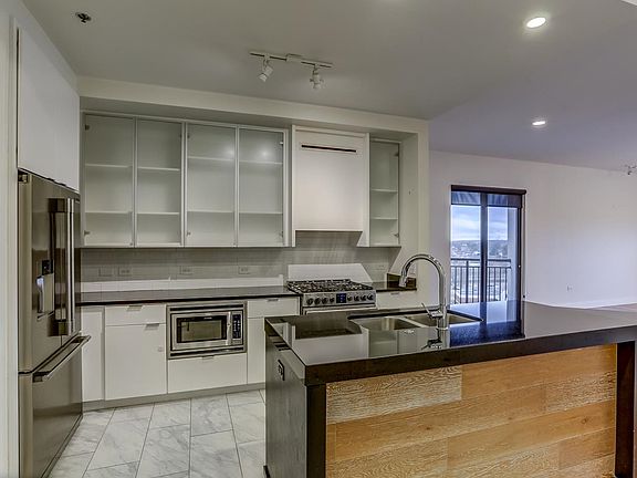 This is a fantastic looking condo with awesome river views. Wood floors, chefs kitchen, large primary suite, flex room or separate office, 2 balconies, 2 covered parking spaces in the garage. This property features tons of amenities; indoor and outdoor pools, roof top deck with majestic river views, tennis courts, bike storage, event kitchens, workout facility, yoga room, pet park, etc. You Will love it.