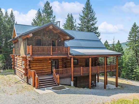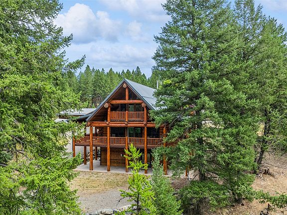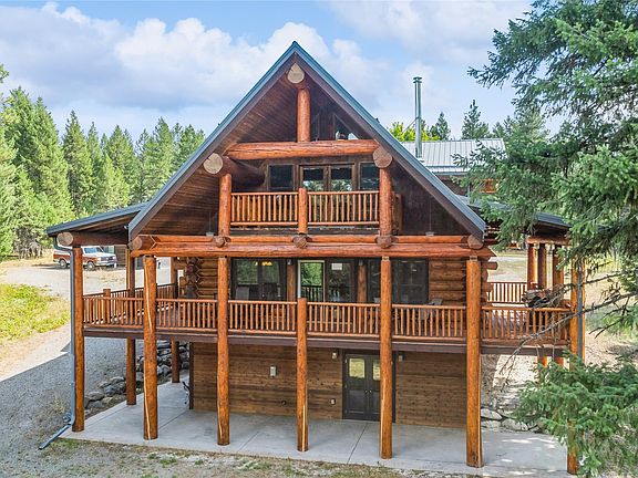 Montana living at its finest! This gorgeous 3-bedroom, 3-bath log home offers the perfect blend of Montana charm and modern comfort. Situated on 21 acres bordering National Forest Land, this property provides unparalleled privacy and access to nature. The log home has three balcony decks on the third level, wraparound, covered deck on the main level and stamped concrete patio off the lower level. The private primary ensuite features vaulted ceilings, a large soaking tub, & walk in closet. Step into the 2 bedroom, 1 bath guest house and fall in love with the charm. 2-car detached garage offers ample space for vehicles & storage. For those who love to tinker or need extra workspace, the detached shop with covered, finished wraparound carports offers endless possibilities.