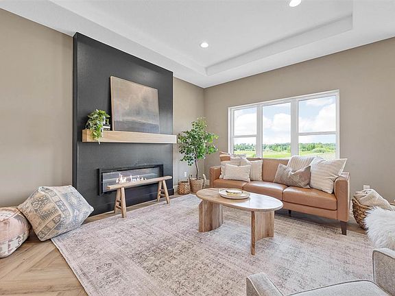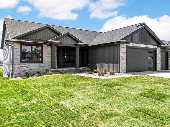 Move in before school starts! This new construction ranch from B Hancock Homes has gorgeous features and finishes throughout! The focal point of the great room is a linear fireplace, surrounded by plenty of natural light and LVP flooring installed in an eye-catching herringbone pattern. The open concept floor plan flows into the spacious kitchen with dark quartz counter tops, beautiful tile backsplash, stainless steel appliances, large center island/breakfast bar, gold-tone pendant lighting and daily dining room with views of the backyard. Sliders off the dining area lead to the elevated deck. Convenient drop zone with built-in cubbies off the three-car garage entry; opens to the laundry room and wraps around to the primary suite. Built-in desk off the great room is perfect area for working from home or keeping the family on track. Primary Suite features neutral carpet and an en-suite bath with double vanity, arched mirrors, and custom tile shower. Two additional bedrooms and 2nd full bath complete the main level. The lower level features plenty of light through the daylight windows, built-in wet bar, 4th and 5th bedrooms, and 3rd full bath. Three-car attached garage. Easy access to Center Point-Urbana schools and easy commuting off I-380. Welcome home to Center Point - come take a look at this gem!