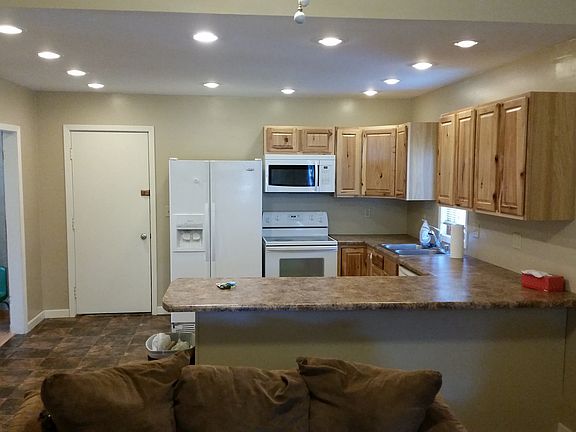 This 2 bedroom one bathroom house is located in a quiet neighborhood on the south side of town, located across the street from a elemetry school and playground. The house has had may recent upgrades including a new kitchen with open concept to the living room, new flooring and paint, new electric furnace, air source heat pump, and water heater all under warranty. This home is all electric with a new 200 amp electrical service. The home has newer cement board siding and Pella windows. It also has a fenced in front yard perfect for children or pets. In the back of the home is a one car detached garage and oversized two vehicle carport with additional off street parking.