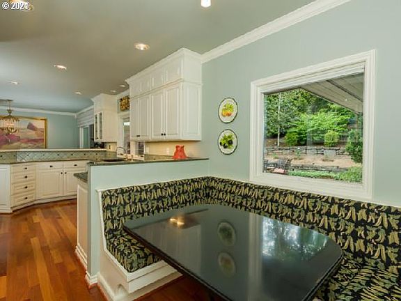 Great location, partial river views and a private backyard. 2 master suites on main level. Two lovely decks and patios. Mature landscaping with cobblestone, wrought iron classic railings. A true classic. Cherry hardwoods, granite, travertine. Main floor living. Elevator to partial basement. Minutes to downtown Portland.