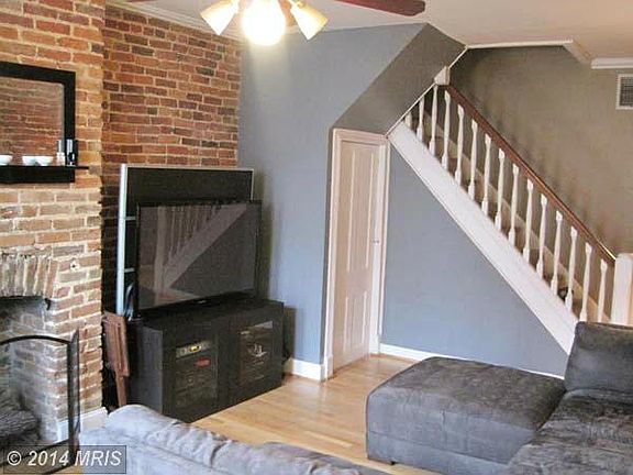 2 BR,1.5 BA rowhome perfectly appointed in CANTON. This home features exposed brick and open layout kit/din area with access to rear courtyard with a hot tub. Updated kitchen. Rear deck leads to roof top deck with spectacular views of the city. Spacious bedrooms on 2nd level. Unfinished basement with ample storage space. This is a must see! Property is sold "as-is." SS approved price $230k