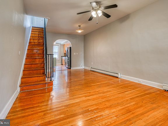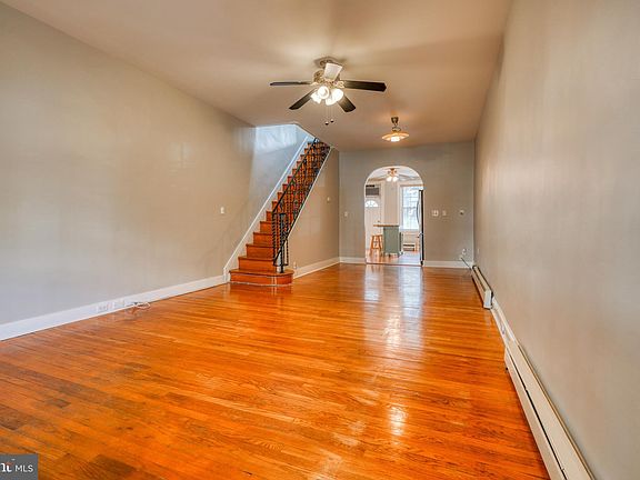 Lovely townhome in a prime location in Canton with off street PARKING!! The main level offers hardwood flooring and an open floor plan with a previously updated kitchen. 1 car private parking pad located off the rear of the home accessed directly from the kitchen, perfect for bringing in groceries! 2 good sized bedrooms on the upper level with 1 full bathroom. Indoor stairwell on upper level leads you to an outdoor rooftop deck with stunning views of the harbor and city skyline! Unfinished basement with a stand alone toilet and sink - a great opportunity to upgrade to a 3 bedroom 2 bathroom home! Minutes from stores, restaurants, highways and a short walk to Patterson Park!