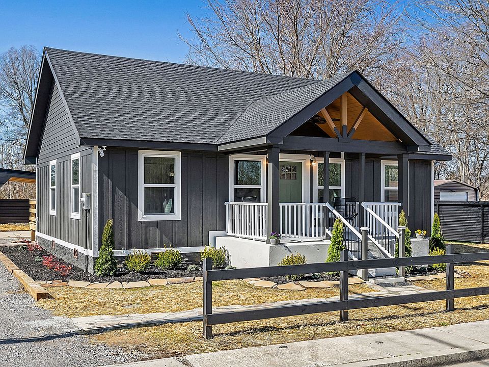 Custom New Build! Check out all of the unique details of this home, its one of a kind. Step into this stunning home, thoughtfully designed with both style and functionality in mind. The beautifully crafted front fence enhances curb appeal, while the privacy fence around the sides and backyard ensures a secluded retreat. The inviting front porch, with its elegant design, welcomes you inside to an open floor plan featuring a breathtaking tongue-and-groove vaulted ceiling. A versatile open loft area with a wooden railing overlooks the main living space, offering endless possibilities for use. The spacious primary bedroom also boasts a vaulted shiplap ceiling, adding to its airy feel. The attached en suite bathroom is a true oasis, complete with a double vanity and a custom-tiled walk-in shower. Throughout the home, luxury vinyl plank flooring provides both durability and modern charm. The exterior showcases a custom finish with LP 30-year Board & Batten siding, blending timeless appeal with low-maintenance durability. The large, level backyard is fully enclosed by a striking dark privacy fence, creating a private outdoor escape. A covered patio/carport, designed to match the home, adds convenience and additional outdoor living space. This home is a perfect blend of beauty, comfort, and practicality—don’t miss the chance to make it yours! Taxes to be determine for new build. Seller would be willing to build a small fire pit if buyer is interested and design can be agreed upon.