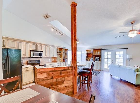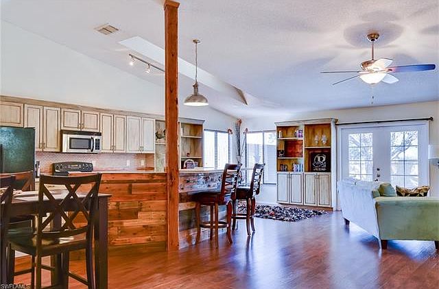 Beautifully updated renovation on this affordable home close to all the best Cape Coral has to offer! This property shows pride of ownership and is a must-see for first time home buyers or snowbirds wanting a great investment home. Desirable open, split floor plan with dining in the kitchen area and plenty of cabinet storage. The fenced backyard is large enough for a pool and has two access fences for easy storage of all your toys. Just three streets from a community park and nearby boat ramp, this property will NOT last! Please click on the property tour, and once inside the home, click on the blue dot on the front door. Push the arrow to enjoy the aerial view of this outstanding home.
