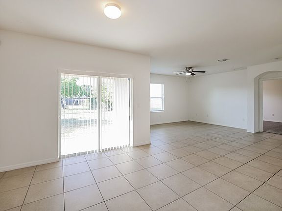 Please note, our homes are available on a first-come, first-serve basis and are not reserved until the lease is signed by all applicants and security deposits are collected. This home features Progress Smart Home - Progress Residential's smart home app, which allows you to control the home securely from any of your devices. Want to tour on your own? Click the "Self Tour" button on this home's RentProgress. This inviting four-bedroom, two-bathroom rental home in Cape Coral, FL provides an attached two-car garage with an entrance into the house. The open floor plan includes an eat-in kitchen with an island and a pantry where you can store your dry goods and small appliances. The connecting airy dining room boasts sliding glass doors that open to a covered patio where you can relish outdoor entertaining. The adjoining living room features an overhead fan with a light that beautifully illuminates the space. Relax in the carpeted main bedroom with a walk-in closet and a bathroom offering double sinks and a walk-in shower. Apply for this 1,828-square-foot home today.