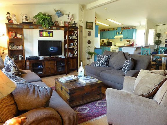 PRICE REDUCTION on this very charming manufactured home with fully fenced back yard, enclosed carport, attractive insulated 8X10 storage shed, and hot tub. Landscaped with pond and fountain. Room for trailer in back. Swamp cooler has never been used. Great features include lovely interior with high ceilings and outside fun with horse shoe pits, jacuzzi with sound system, & children't miniature golf course (to be finished by close of escrow).