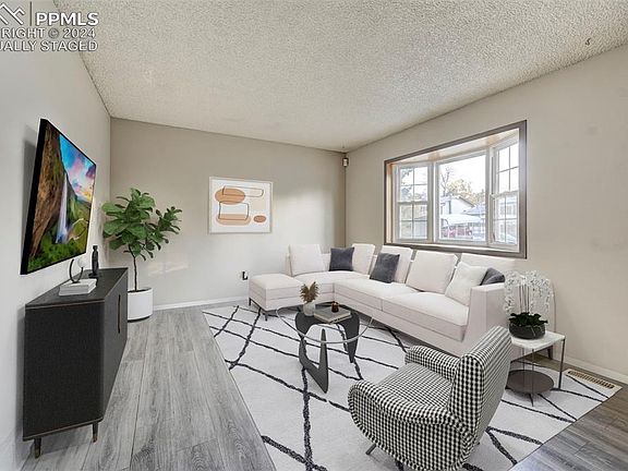 This three-bedroom, two-bathroom home, with approximately 1,400 square feet of living space, combines functionality and charm, all set against scenic mountain views. Recent updates include new paint in the living room and primary bedroom, enhancing the home’s welcoming ambiance. The open layout offers ample room for comfortable living and hosting, creating a versatile space to suit a variety of lifestyles. The primary bedroom and two additional bedrooms upstairs are thoughtfully designed to ensure privacy and flexibility, allowing each room to serve as a bedroom, home office, or creative space as needed. Downstairs, the home provides a large additional living area that could function as a bonus room, extra living space, or entertainment area—ideal for relaxation or gatherings. This lower level also includes a 3/4 bathroom and a laundry room for added convenience. Outside, the expansive lot offers plenty of room for outdoor enjoyment. The fenced backyard features a firepit, perfect for evenings under the stars, with space to add your own touches to create a personalized retreat. Located near schools, trails, and Fountain Creek Regional Park, the home provides both nature access and convenience, with easy routes to Fort Carson and I-25. This home is ready to be shaped into your perfect space, blending practical features with a beautiful mountain backdrop. Also, this property has a newer roof 2022, Furnace 2023, water heater 2023 and garbage disposal 2022!