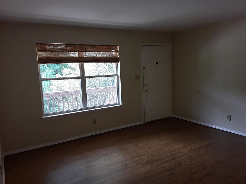 Rare beautiful and large two bedroom one bathroom garden apartment in small apartment building two blocks from the Seminary in the heart of historic Wake Forest. The apartment is done in the cottage style with all white cabinetry and vintage hardware. Scenic views from all windows. All the bells and whistles of a great place to live that is not the standard and typical large complex . Pretty front garden creates a lovely setting. The rocking chair front porch is a sweet spot to relax. The apartment has lots of natural light and is painted in pale cottage colors. The living room is quite large and leads into a good size dining room with a bar open to an eat in kitchen. New custom bamboo roman shades add a nice touch to the open plan living room. New cabinet hardware includes pretty vintage glass knobs and silver cup pulls. A kitchen pantry is included and a separate space for a washer and dryer that you provide. Can easily accommodate a kitchen table. A large screened in back porch with a pretty view and storage closet completes the back area. Huge bedrooms which both have giant walk in closets . A charming bathroom has great storage that includes a linen closet. This is a non-smoking residence. Land lord lives around the corner. Nice safe/quiet area. Walk to down town or grocery store. No texting please. NO section eight, and NO Cosigners. MUST HAVE A 700 or better credit score NO EXCEPTIONS! MUST have confirmed 700 credit score prior to showing NO EXCEPTIONS! Showings will be by apt. only. No texting please. NO section eight and NO cosigners.