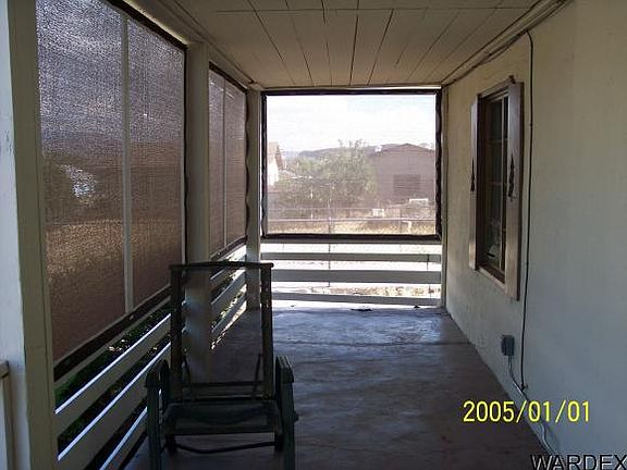 Cute home downtown. Two bedroom, one bath. Has a room that could make into a bedroom, (install closet), or use as office, den, craft room, etc. Wall heater and portable cooler for heating and cooling. Kitchen has lots of cupboards, electric stove and frig. Three storage sheds outside for your tools, workshop, storage. Laundry on side enclosed porch. Large screened porch on front of home. Mature trees provide nice shade. Long concrete drive way and double gate. Plenty of room to park an RV, boat, etc. Come enjoy living just off the heart of Route 66 in nostalgic downtown Kingman.